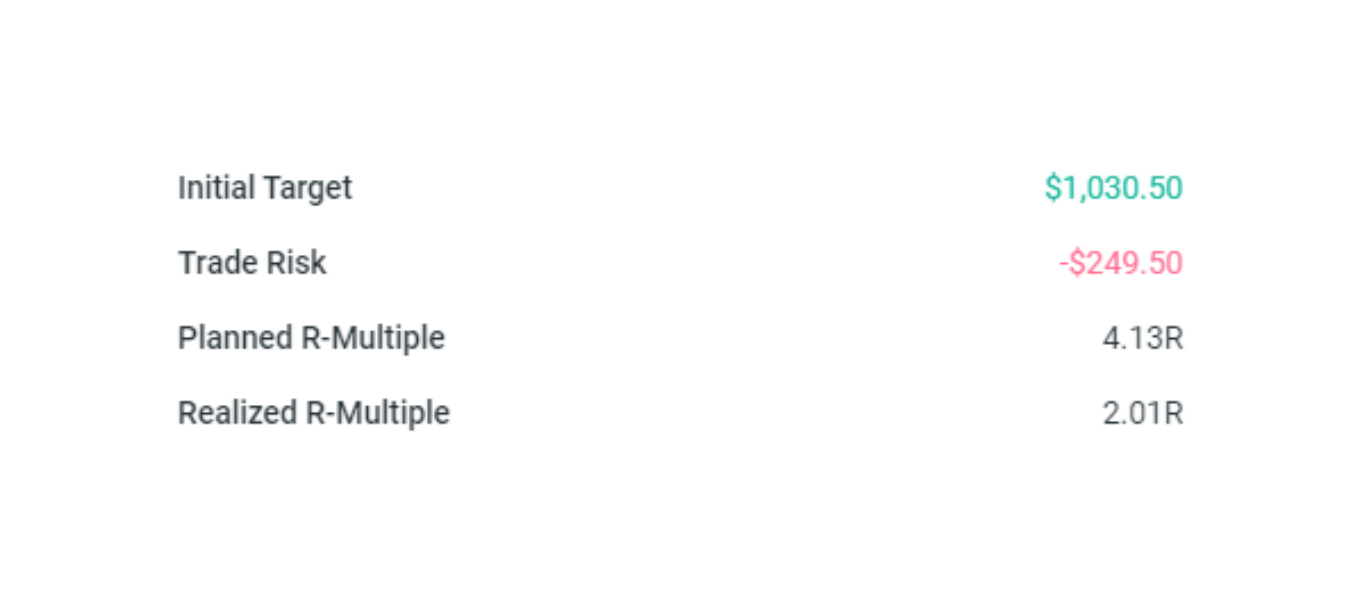However, you exited early at 1.5R. 1.5R is your realized R-Multiple. It's what actually happened.