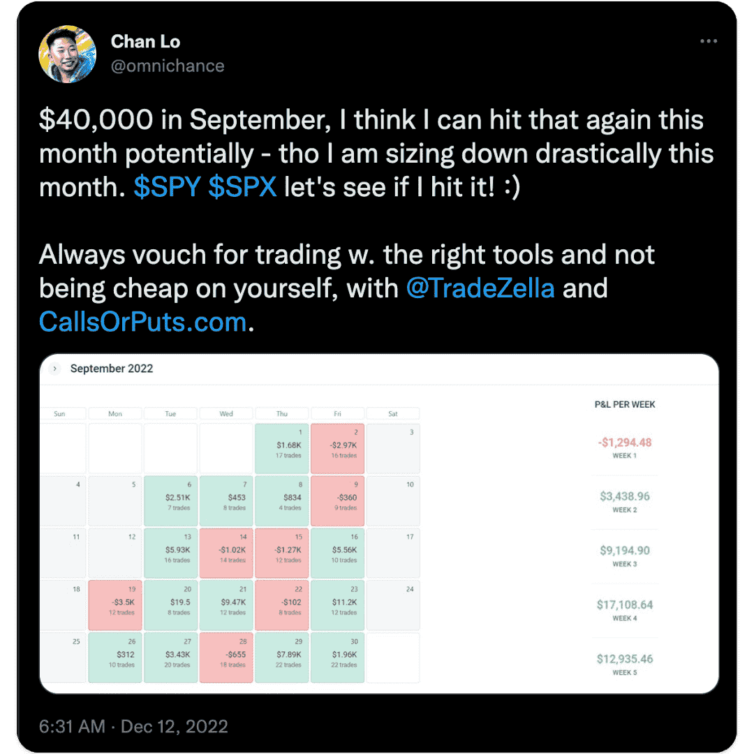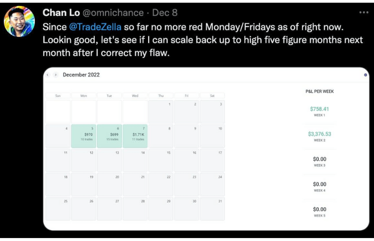 Another discovery Chan made was actually when he joined TradeZella. 🥳