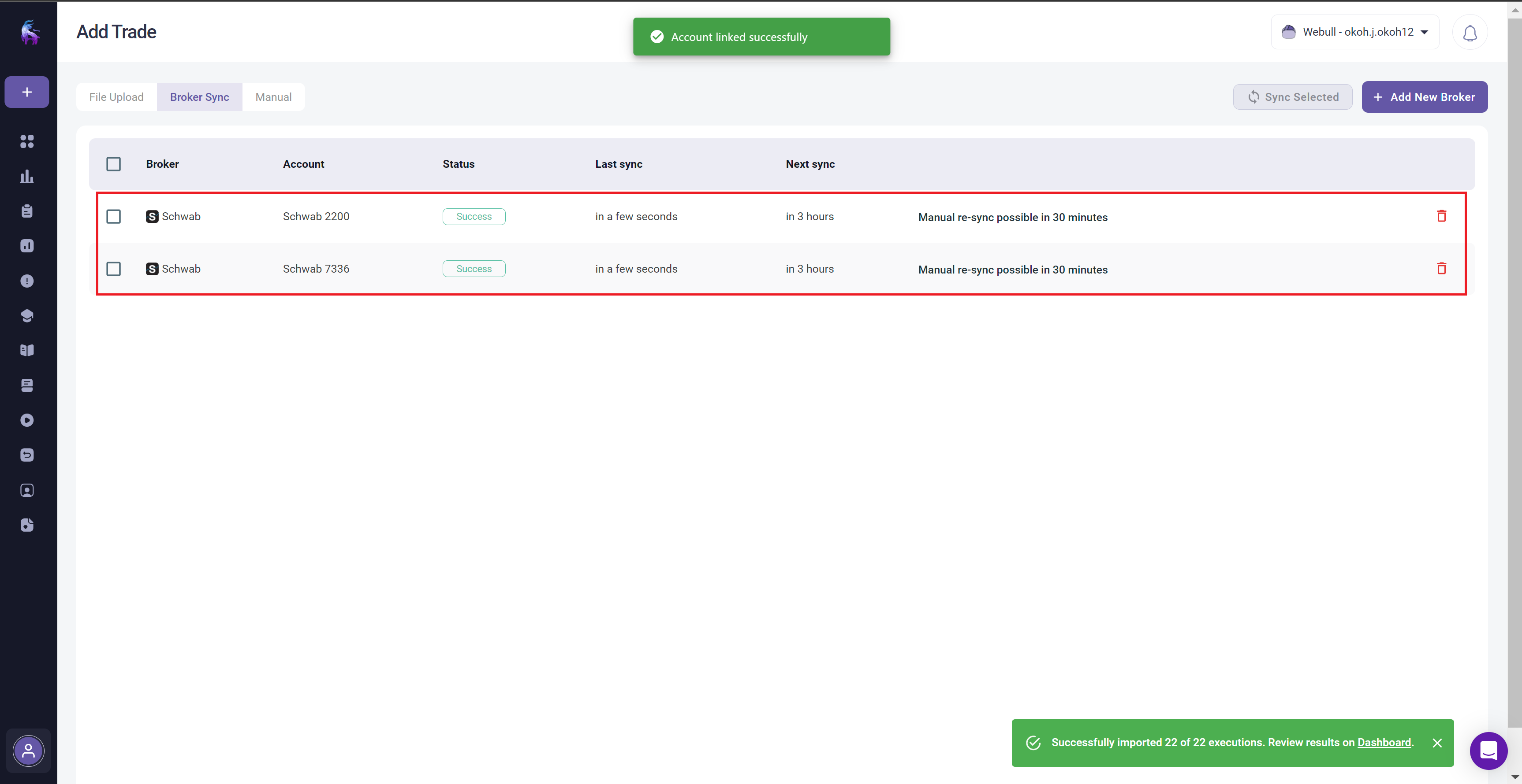 By following these steps, you can successfully sync your Charles Schwab account and have your trades automatically imported into TradeZella.