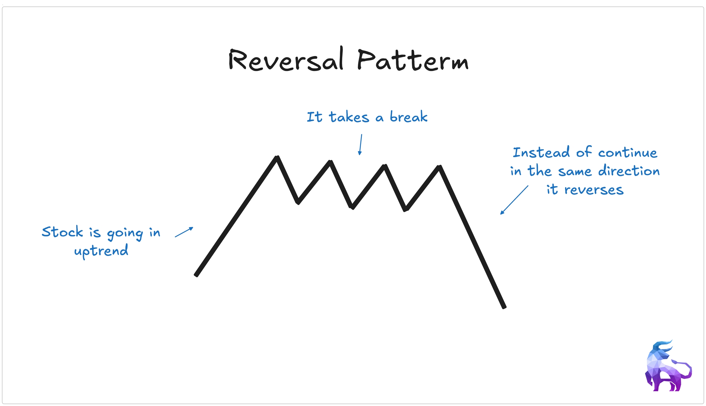 A reversal pattern signals that a trend might be coming to an end. Unlike continuation patterns, which show the price taking a pause before continuing, reversal patterns show that buyers or sellers are losing strength and that the market could be gearing up for a trend change.