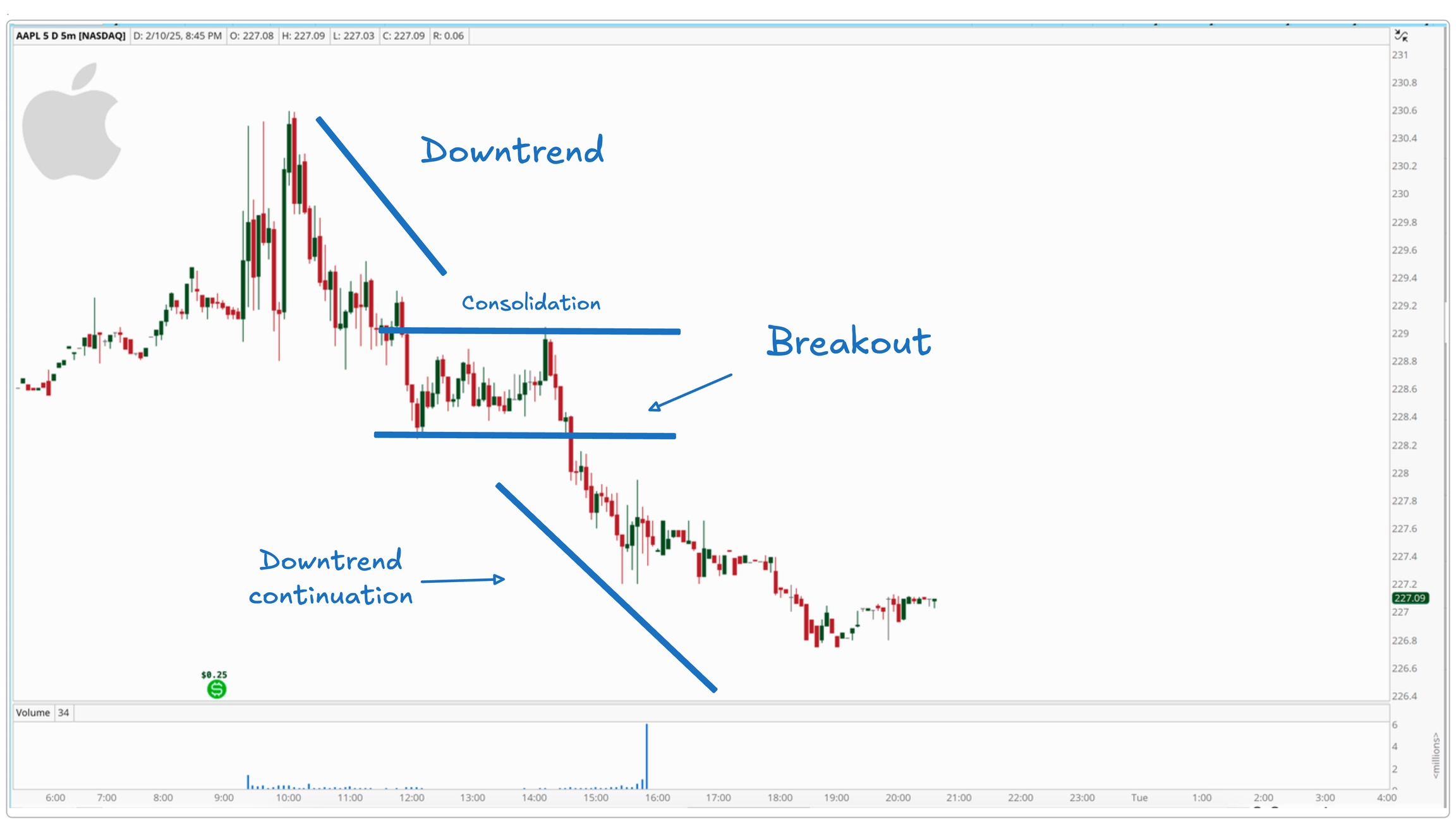 In a downtrend, sellers are in control. The price keeps falling, and bearish momentum is strong.