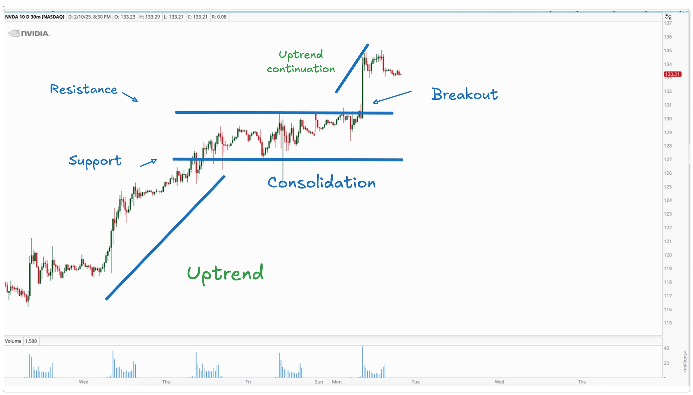 A pattern is more reliable if it’s supported by strong volume.