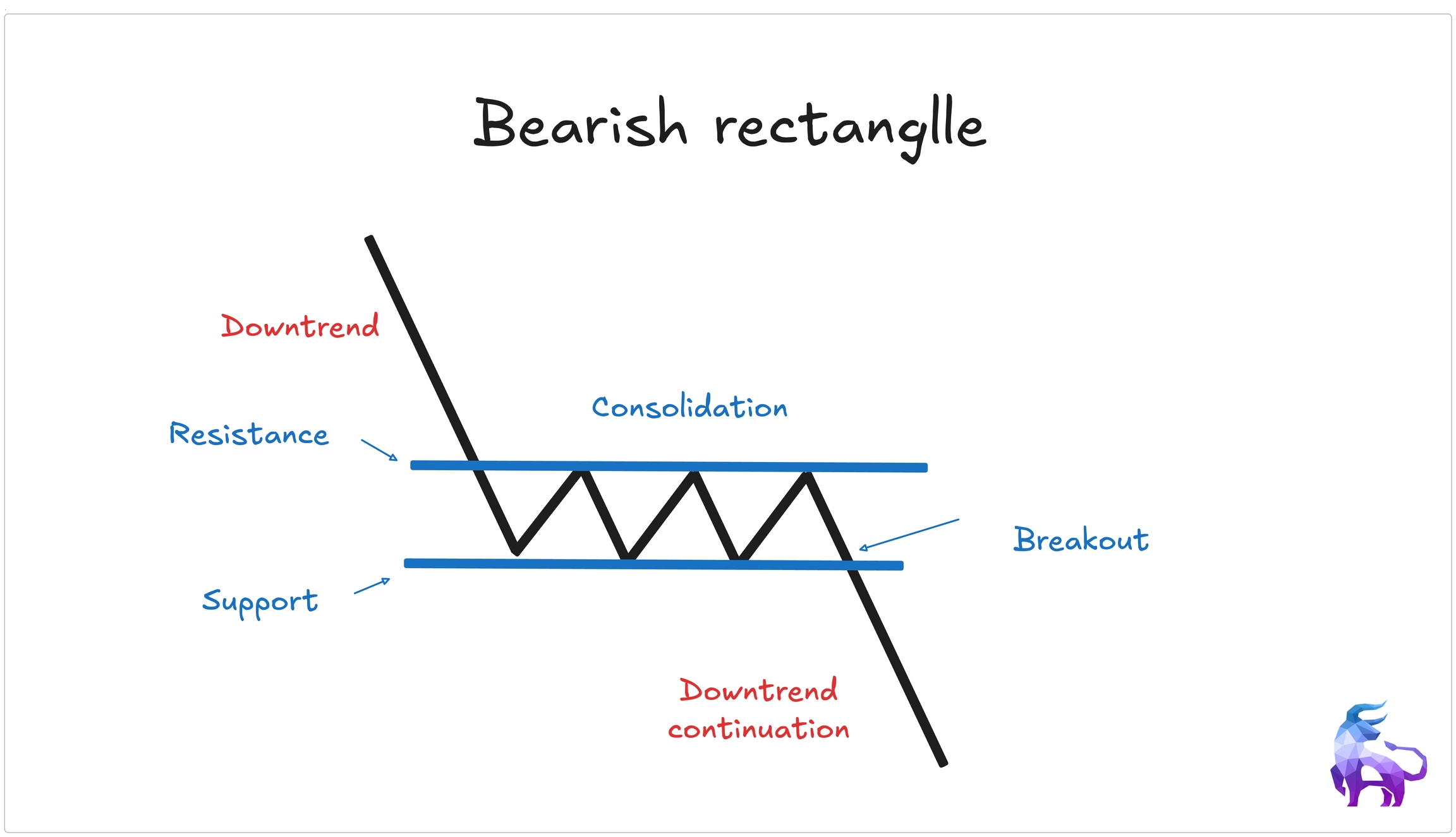 Forms during a downtrend when the price moves sideways before breaking lower. The breakout confirms that sellers are still in control, and the trend is likely to continue downward.