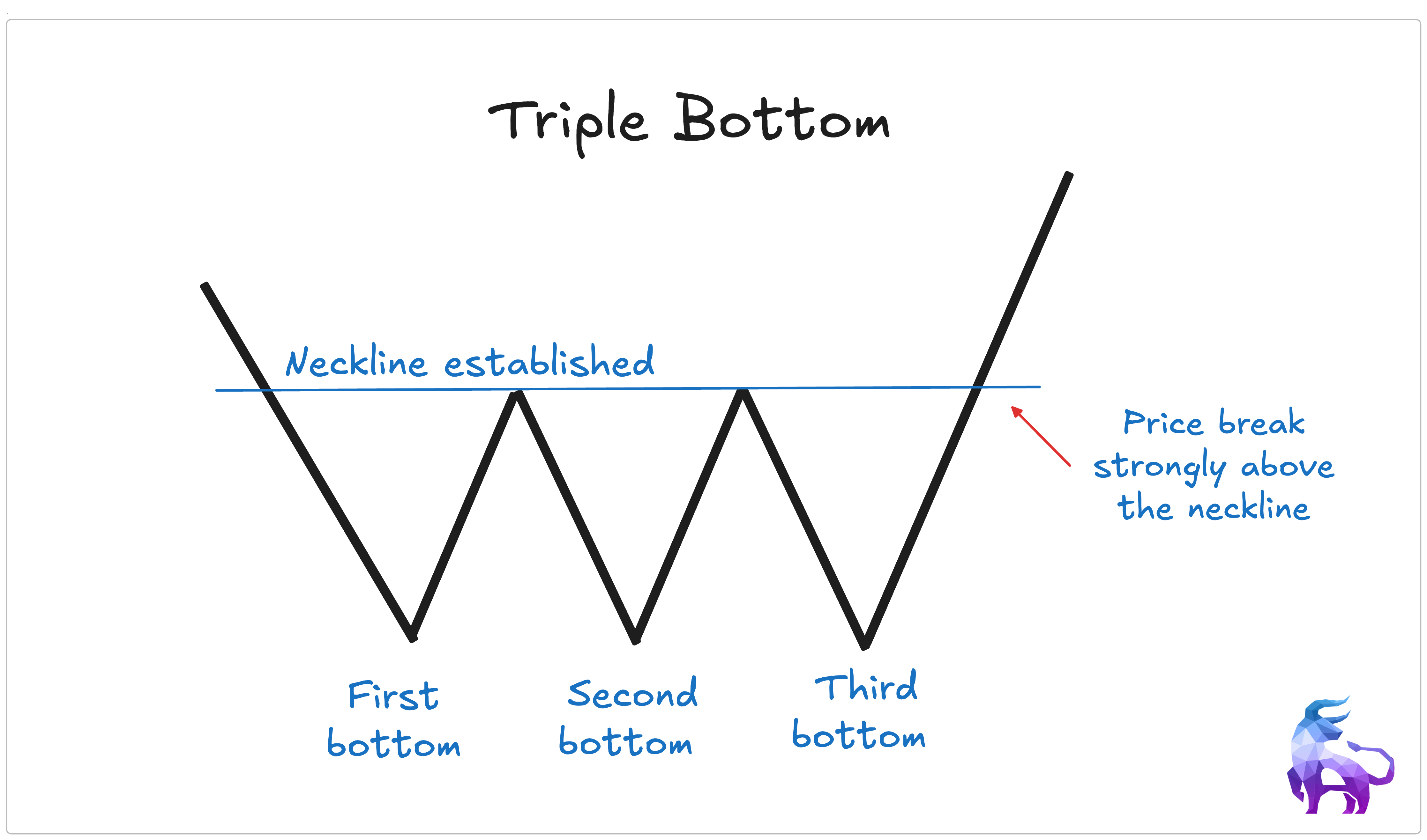 When the price fails to break lower all three times and then finally breaks above the neckline with strong buying volume, the triple bottom is confirmed. That breakout is your signal that buyers have taken control.