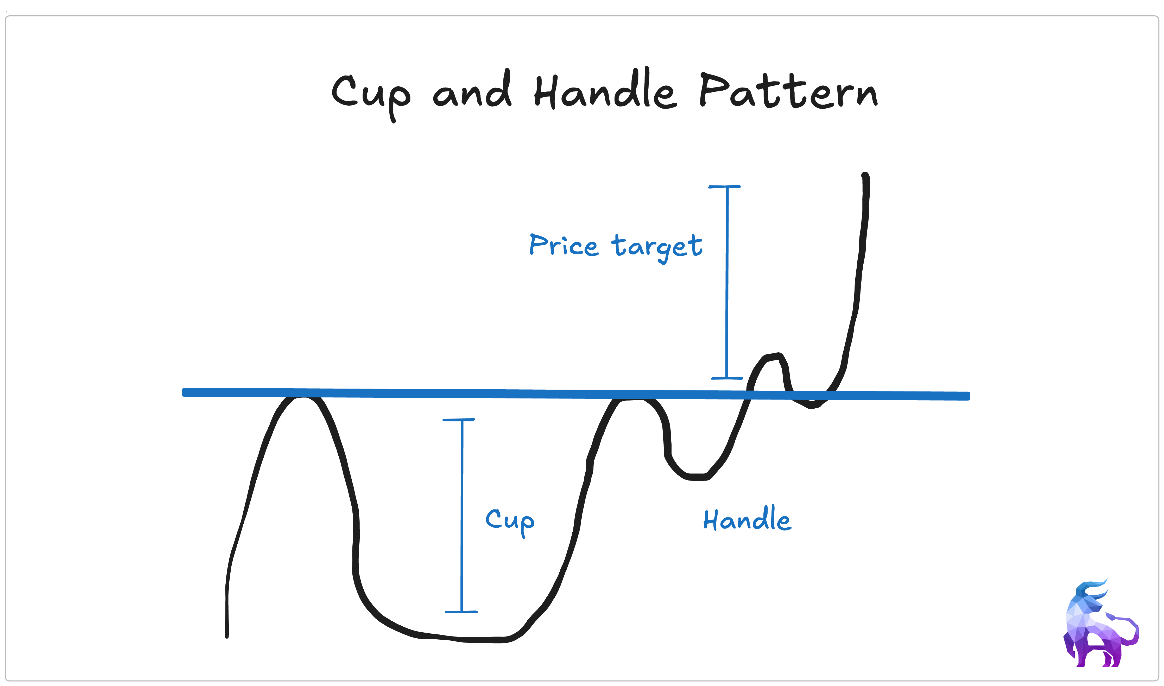 So why is it called a Cup and Handle? Because on a chart, it literally looks like one. The cup forms as the price gently dips and then climbs back up. Then, the handle forms as the price pulls back slightly before breaking out again.