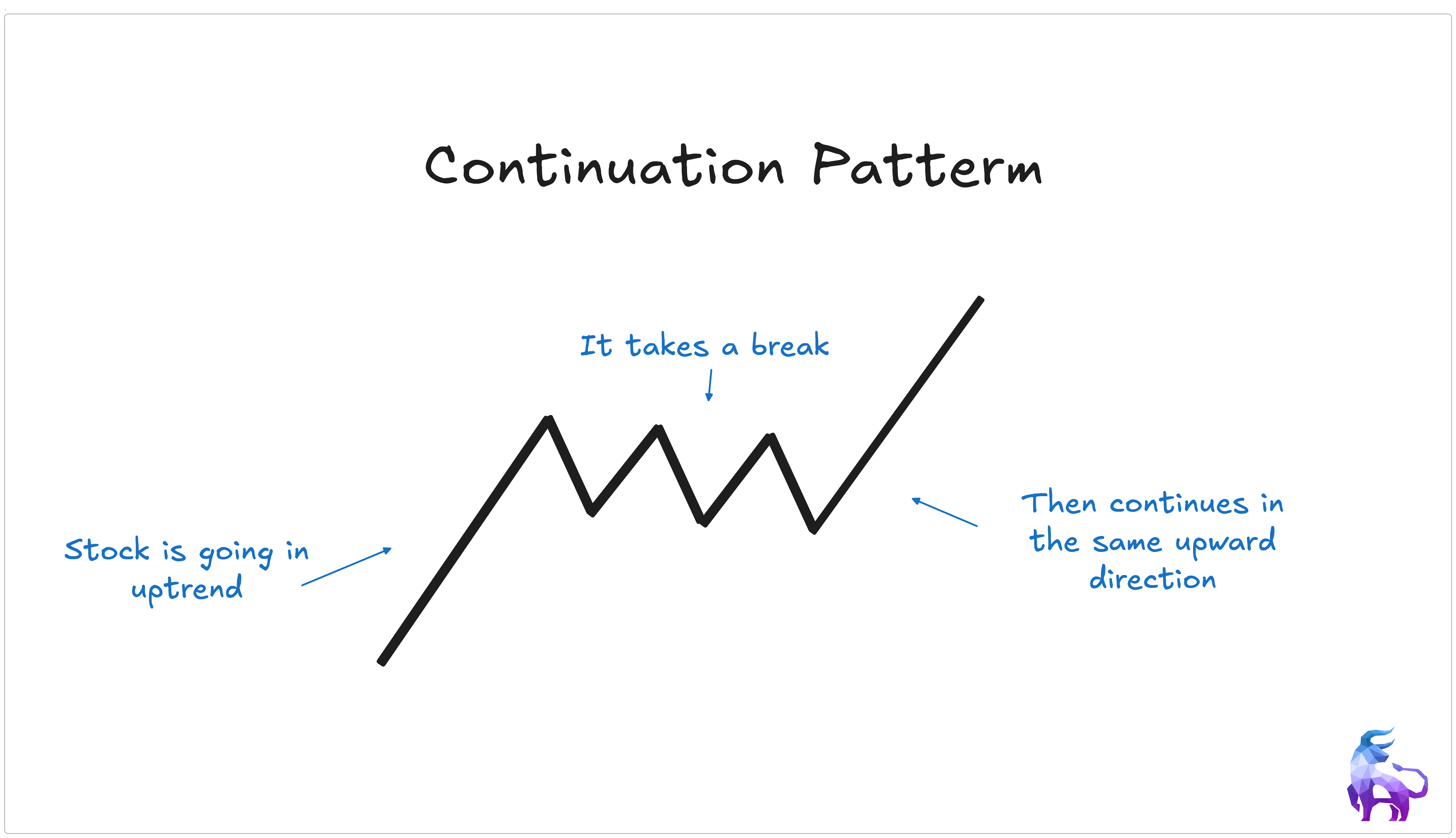 A continuation pattern forms when the price takes a break before continuing in the same direction. Think of it as a resting phase, where buyers or sellers regain momentum before pushing the price further.
