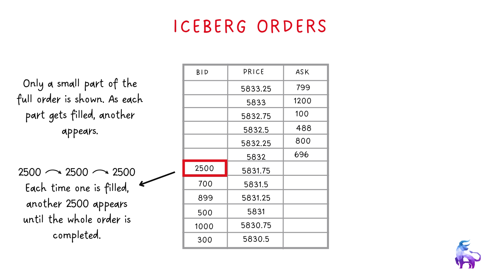 To stay hidden and avoid disrupting the market, they use iceberg orders.