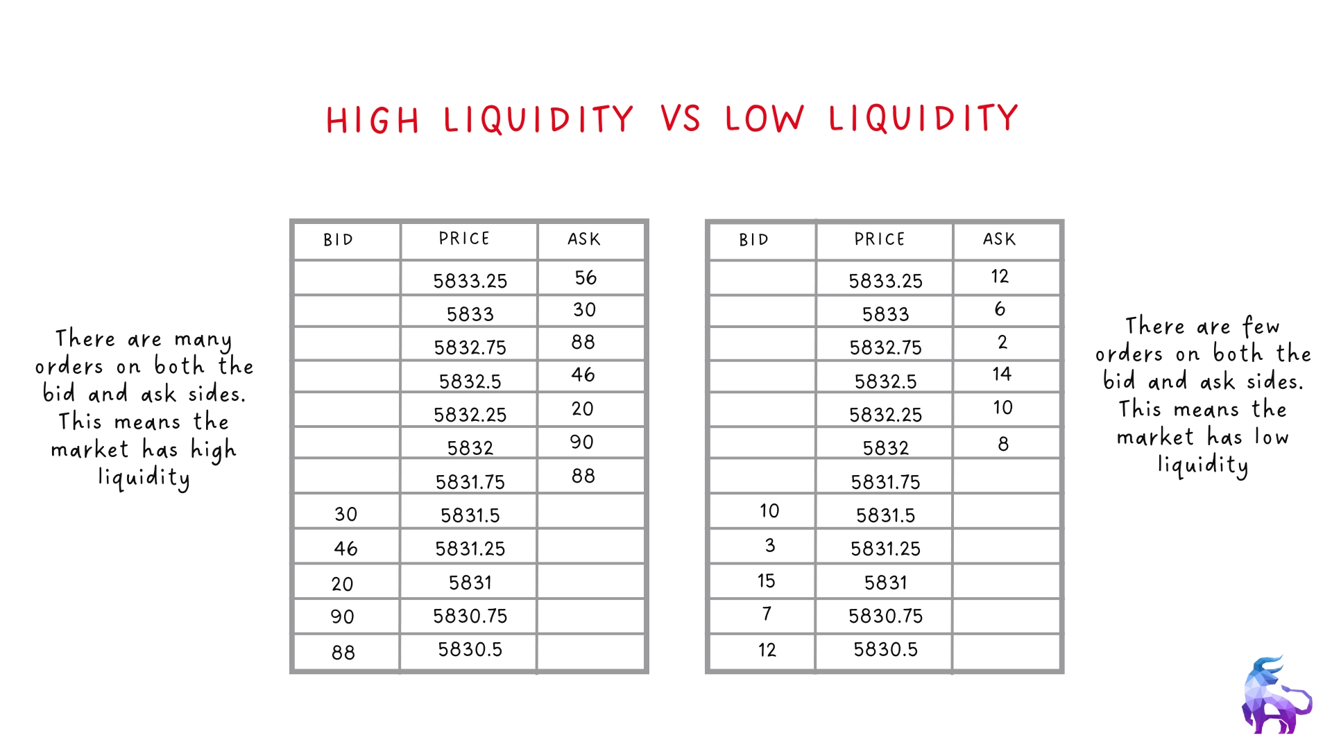 If there are only a few orders, the market has low liquidity, making it hard to trade.