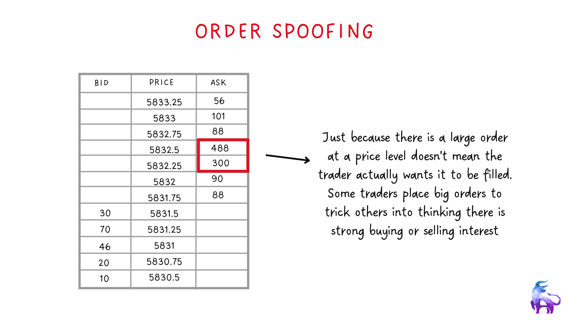 Spoofing happens when a trader places a large order in the market without the intent of getting it filled. The purpose is to create the illusion of strong buying or selling interest to influence price movement.