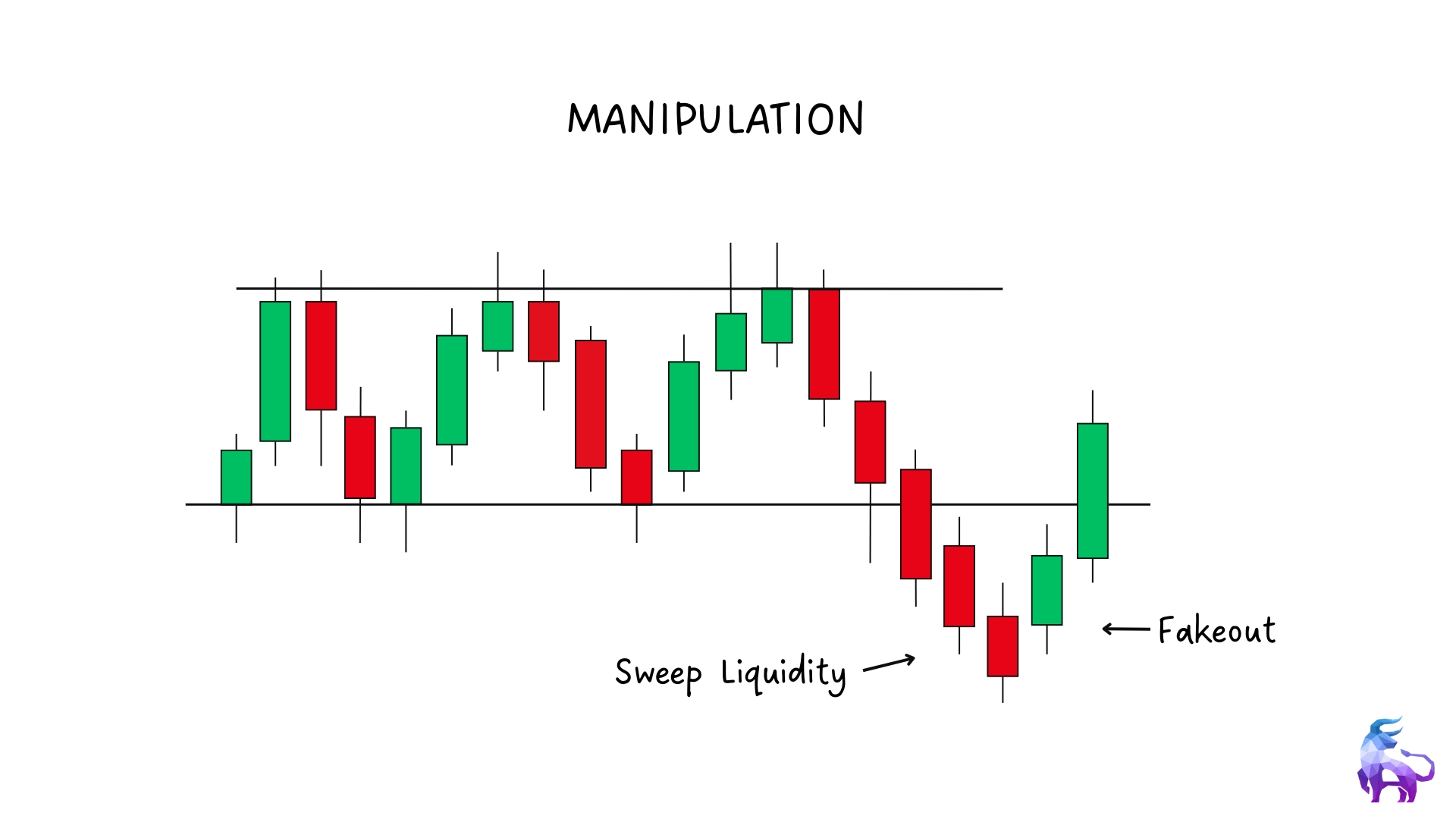 - Manipulation – A fakeout or liquidity grab that tricks traders.