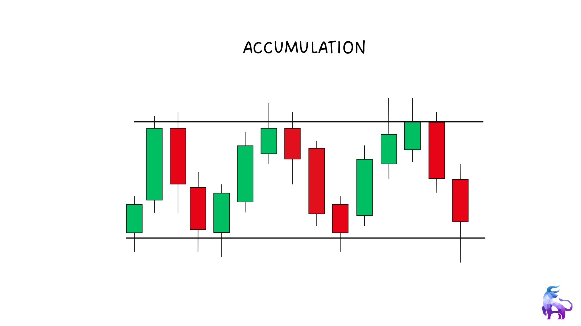 - Accumulation – A range where price consolidates.