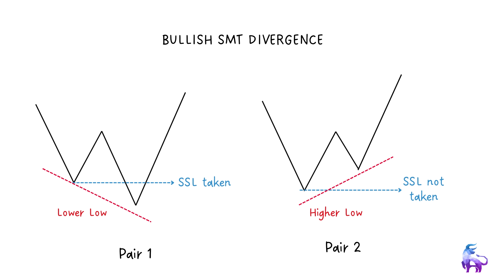 SMT divergence happens when one asset makes a new high or low and sweeps liquidity, while the other does not. This signals that one market may be manipulated while the other shows true intent. It helps traders spot potential reversals before they happen.