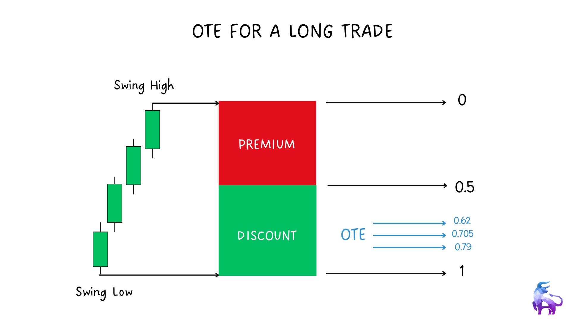 Now that you understand discount and premium zones, we can move into one of the most useful ICT tools for finding high-quality entries — the Optimal Trade Entry, or OTE.