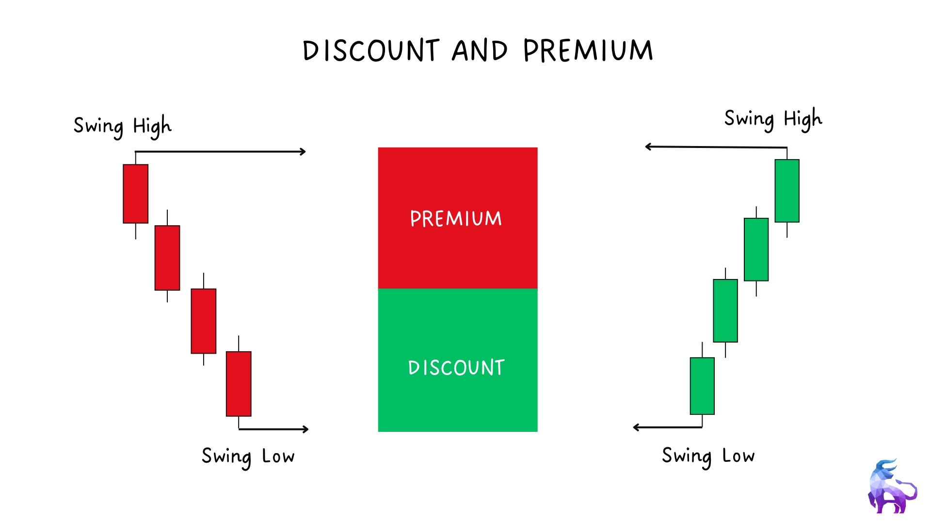 - Discount & Premium Zones: The bottom half of a price range is the discount (good for buys). The top half is the premium (good for sells). Always align trades with structure and context.