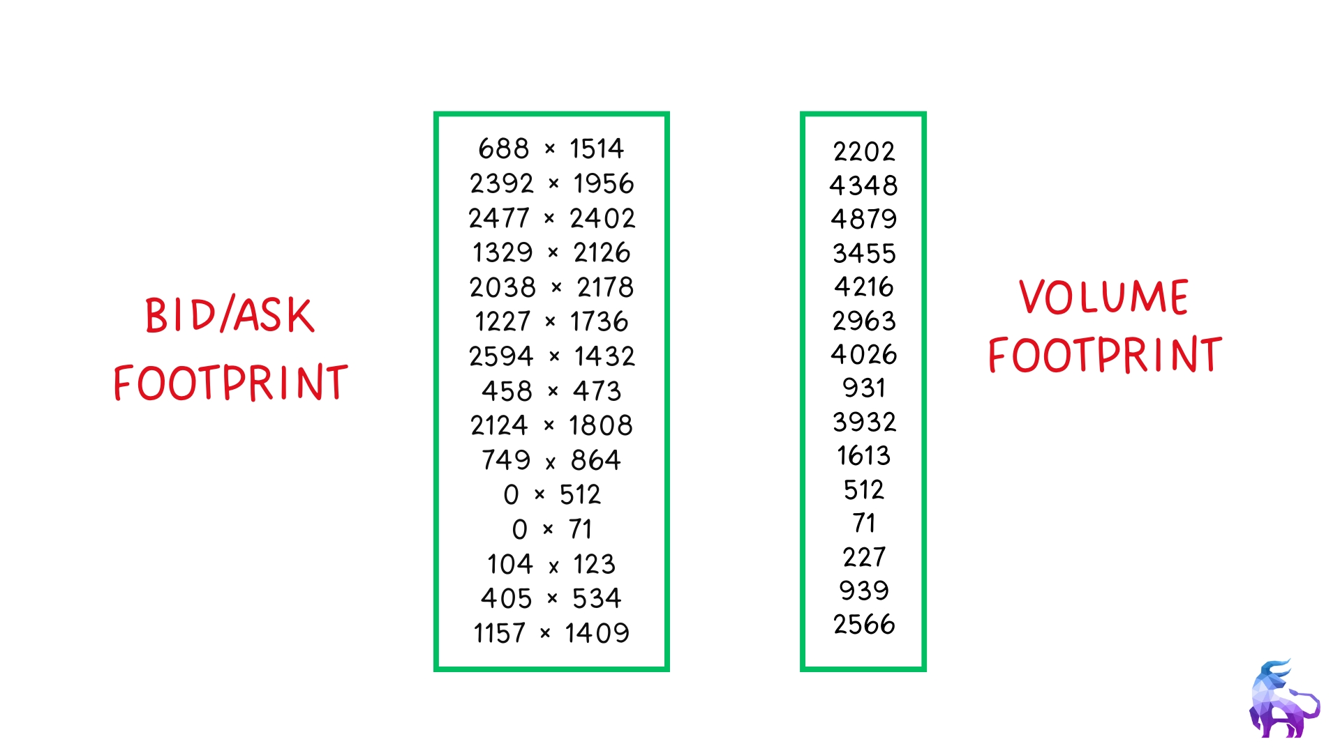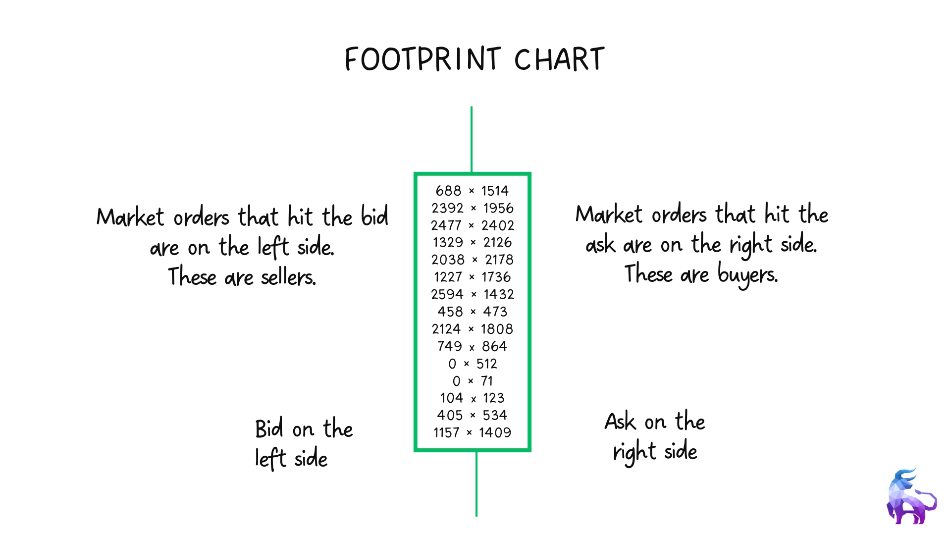 Here is a visual representation of a footprint chart. It might look confusing at first, but we will break it down.