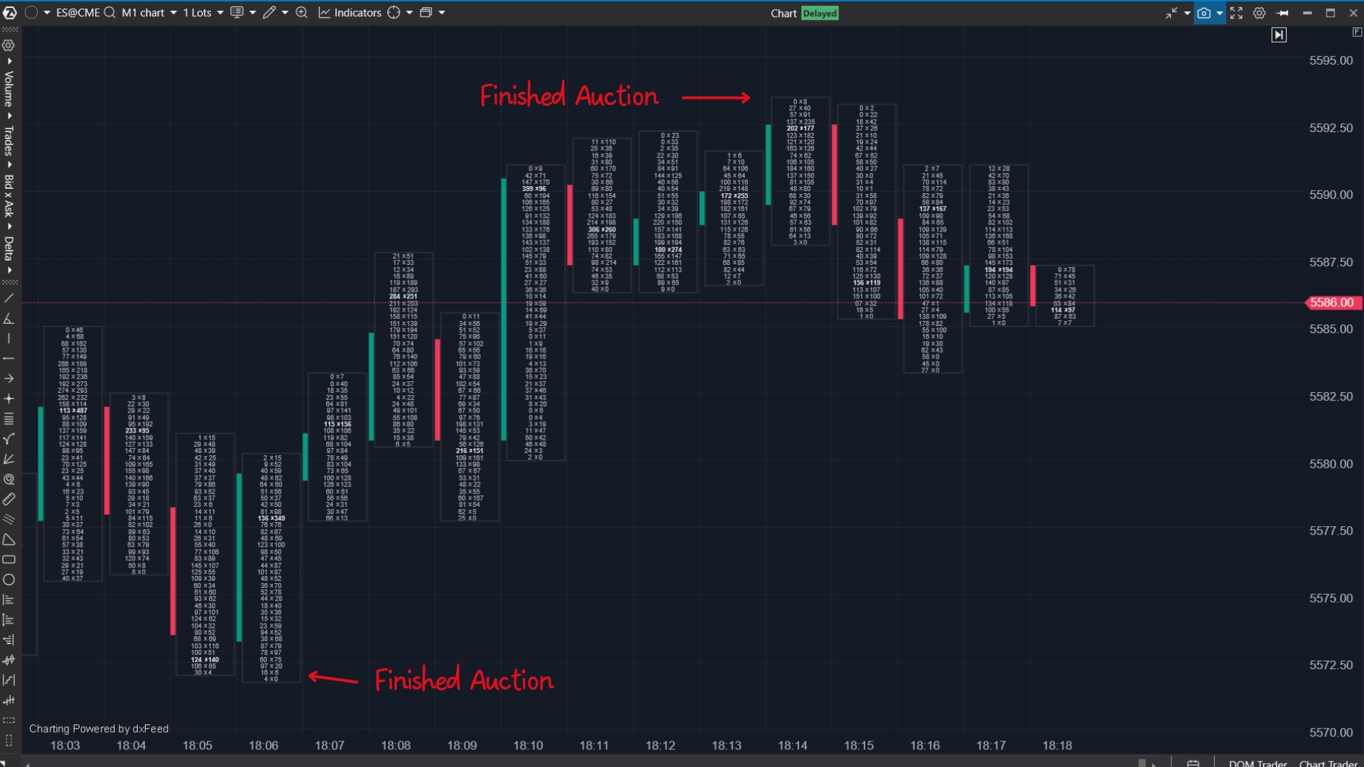 Footprint charts make it easy to see whether an auction is truly finished or if the price is likely to come back and test that level again. This is where finished and unfinished auctions come in.