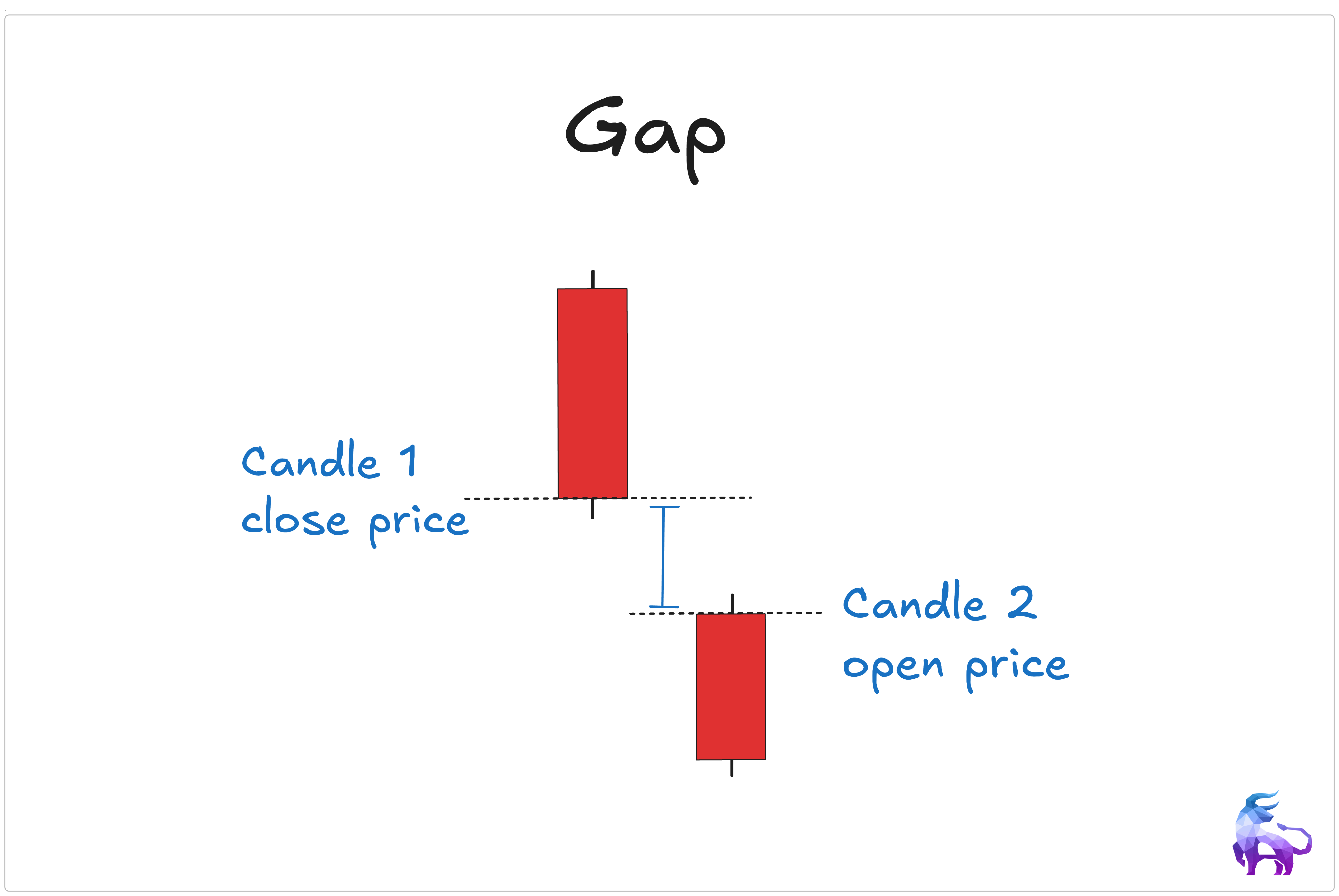 A gap happens when a stock opens at a different price than where it closed the day before, leaving a blank space on the chart with no trading activity in between. Gaps can go in either direction: up or down.