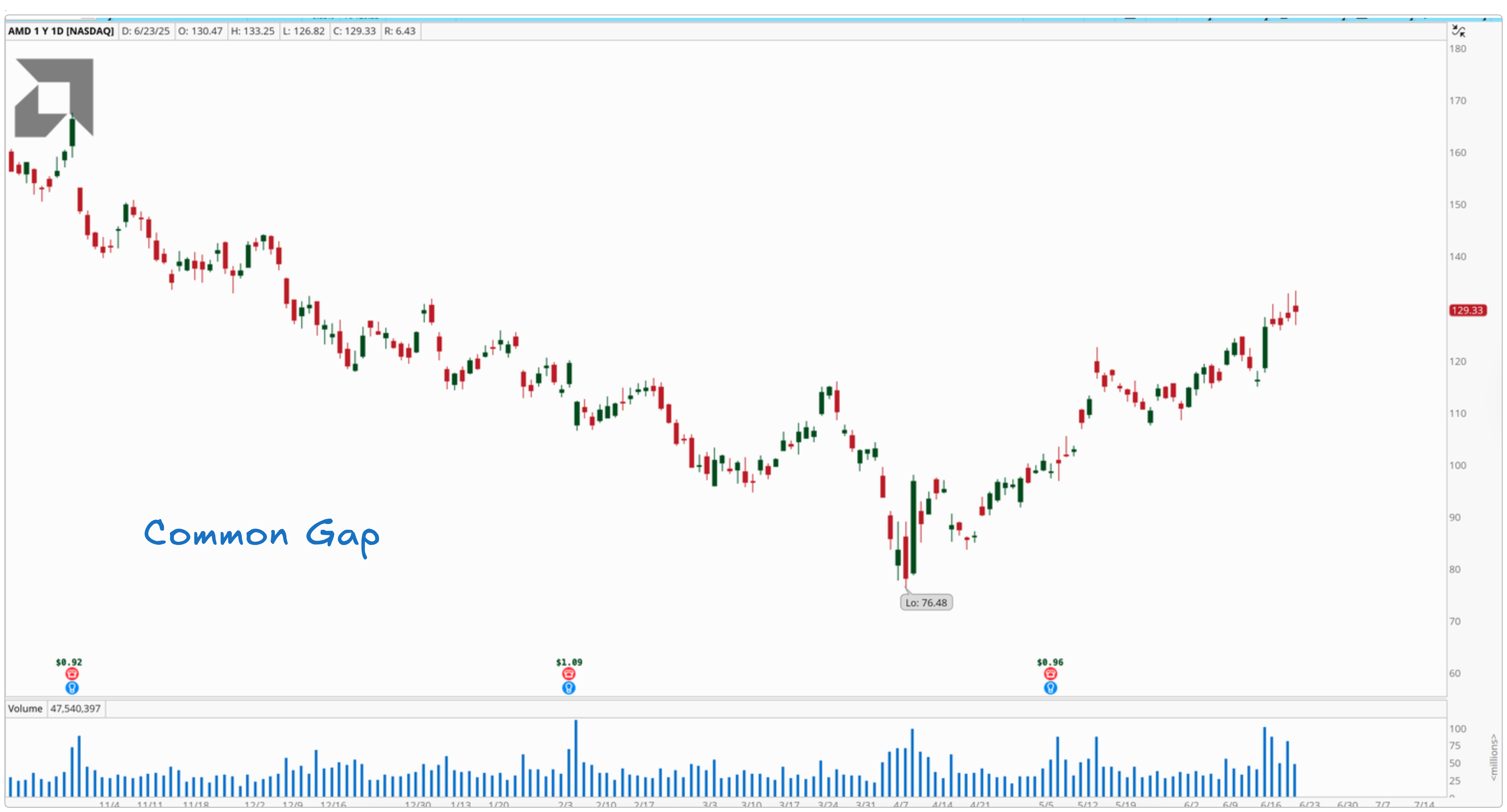 Not all gaps have a clear reason, though. Sometimes stocks gap up or down for no obvious reason. These are called “common gaps,” and they’re usually not worth trading.