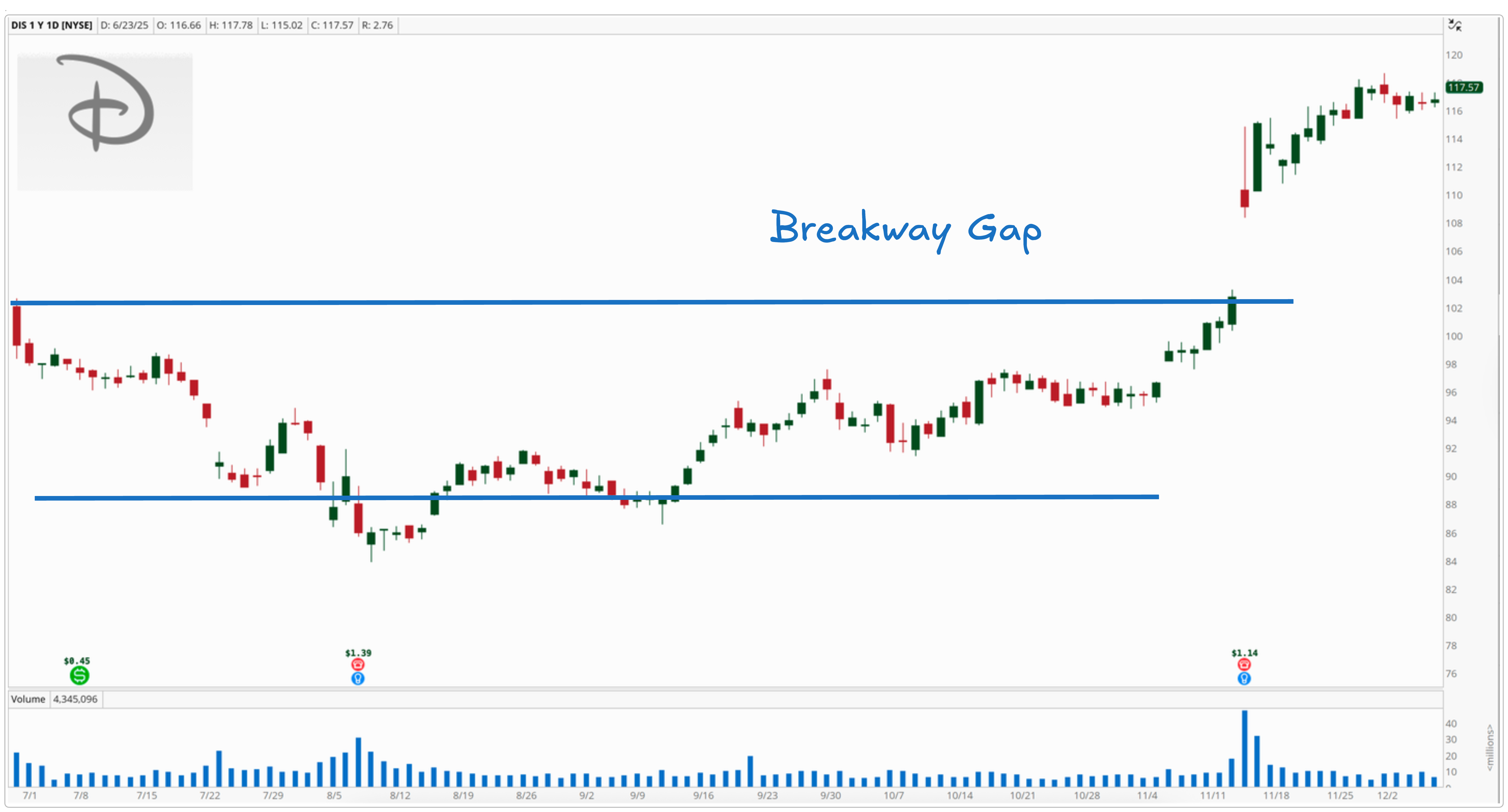 These gaps are often caused by strong news or earnings and can lead to big moves. If the gap holds and volume supports the move, it may be a great opportunity to ride the new trend.