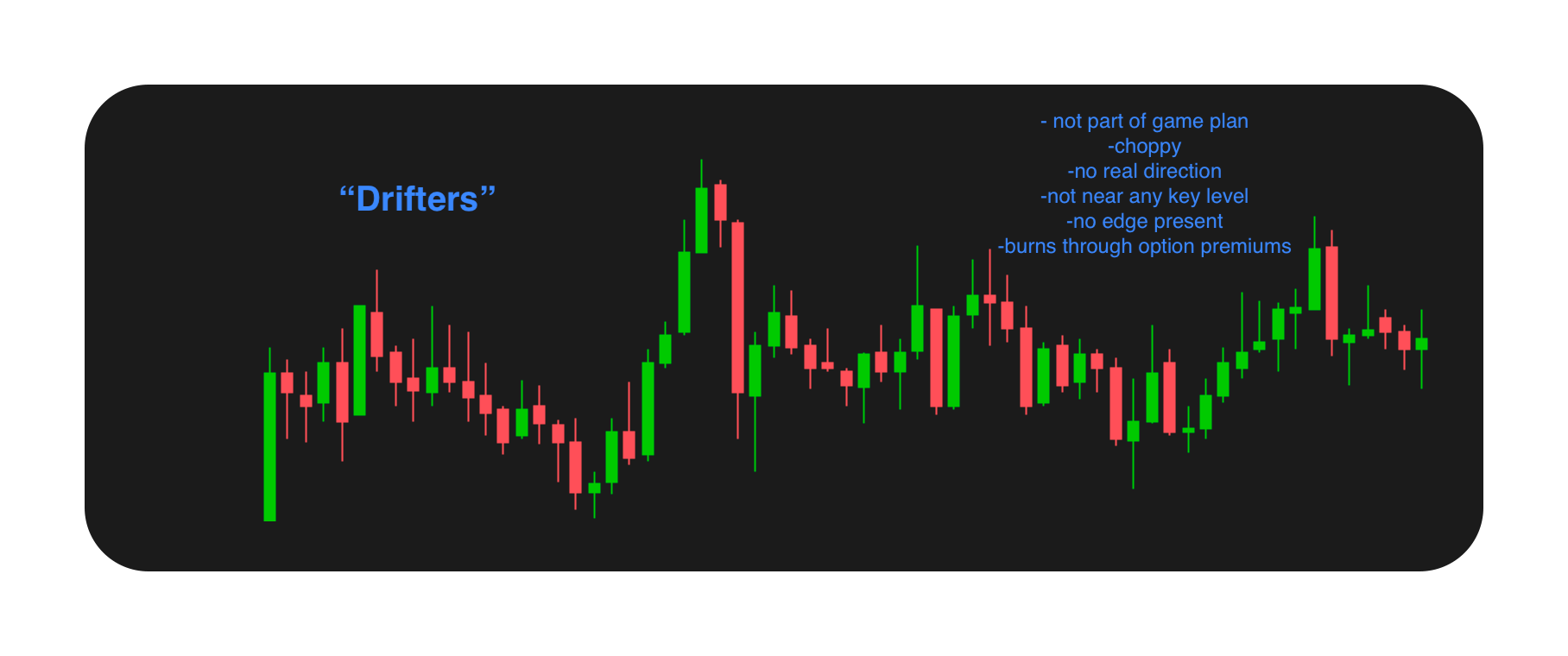 Think of the drifters as the trades you get into that were just boredom trades, no real setup, they “looked good”, or chop.