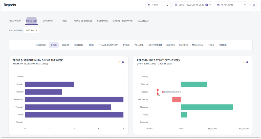 Staying the course with a plan involves a lot of discipline. We’re all human, after all, and sometimes our anxieties can cause us to make impulsive decisions like selling when we should hold. The best way to master your emotions and understand your trigger points is to use an analytics tool, such as a trading journal.