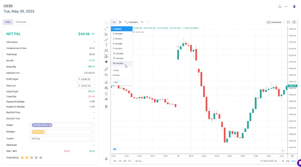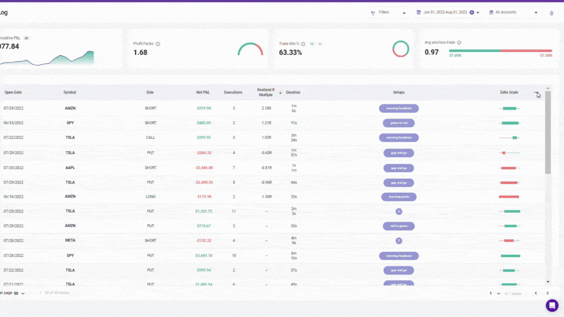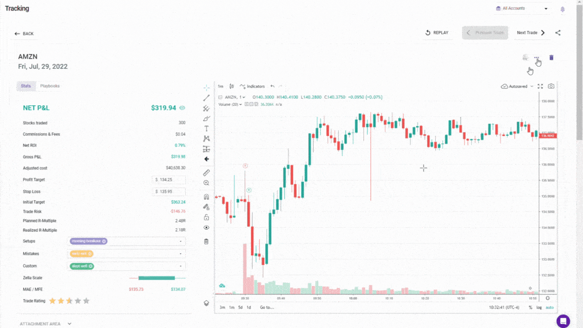 See all of your entries and exits plotted on the chart, tag your setup and mistakes, and refine your strategies!