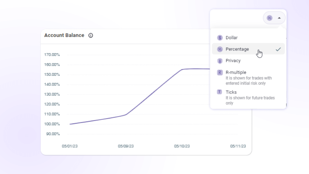 In this update, once you select the Percentage view on the dropdown, the widget will now showcase your account balance in terms of Percentage (%) growth!