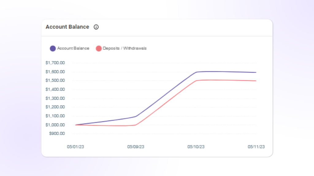 To resolve this issue, we made another update to this widget where you’ll find another line (in red) showing your deposits and withdrawals in relation to your account balance (in blue).