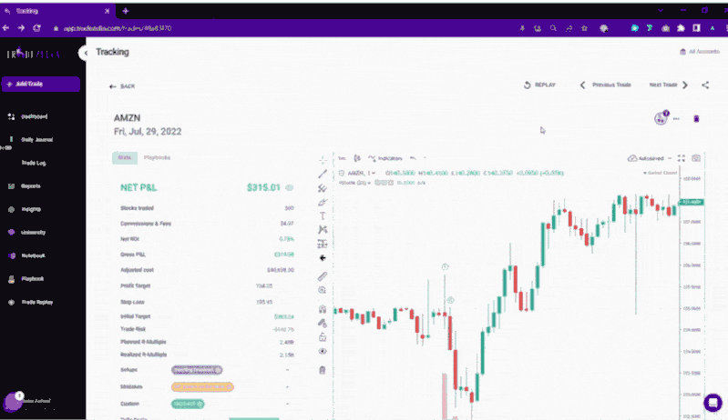 You might have noticed a new tab on your sidebar, the Trade Replay. This allows you to quickly select any trade and replay your executions without going into each trade tracking page.
