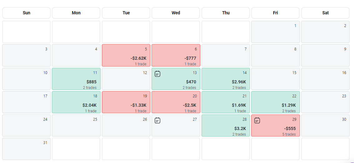 Adding a note is not exclusive for days when you take a trade! You may also add notes even for days you’re not trading. A note icon will also show up for those days.