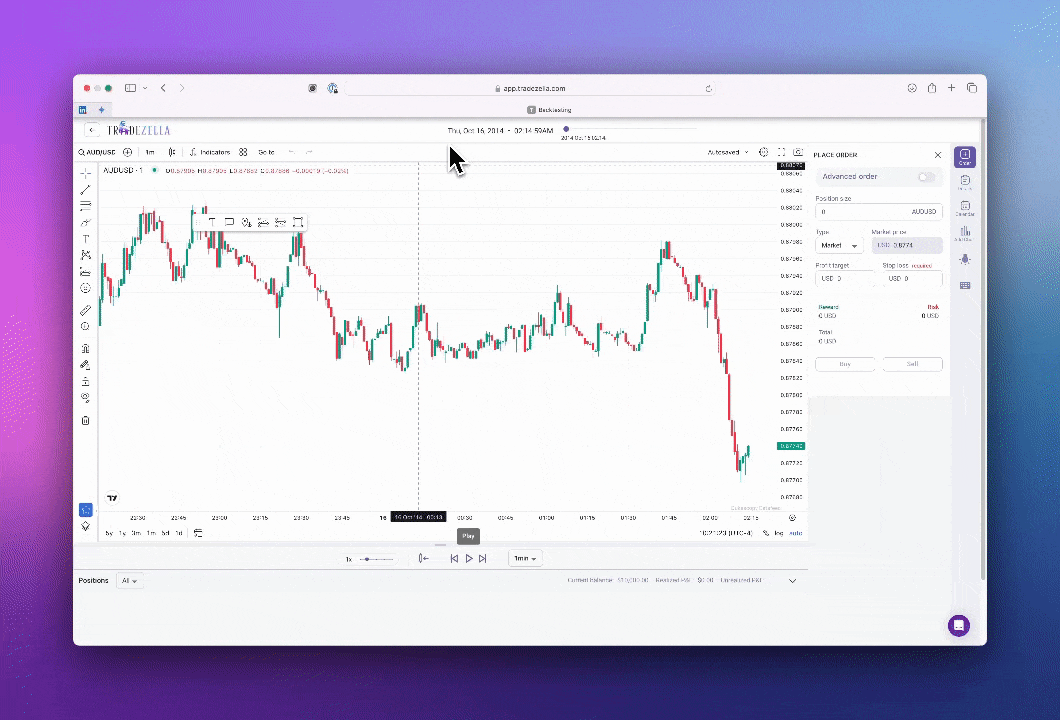 Clicking on the date at the top of your backtesting window shows a calendar pop-up, allowing you to easily switch between years. Additionally, we’ve added the year to the sliderbar for clearer and better navigation.