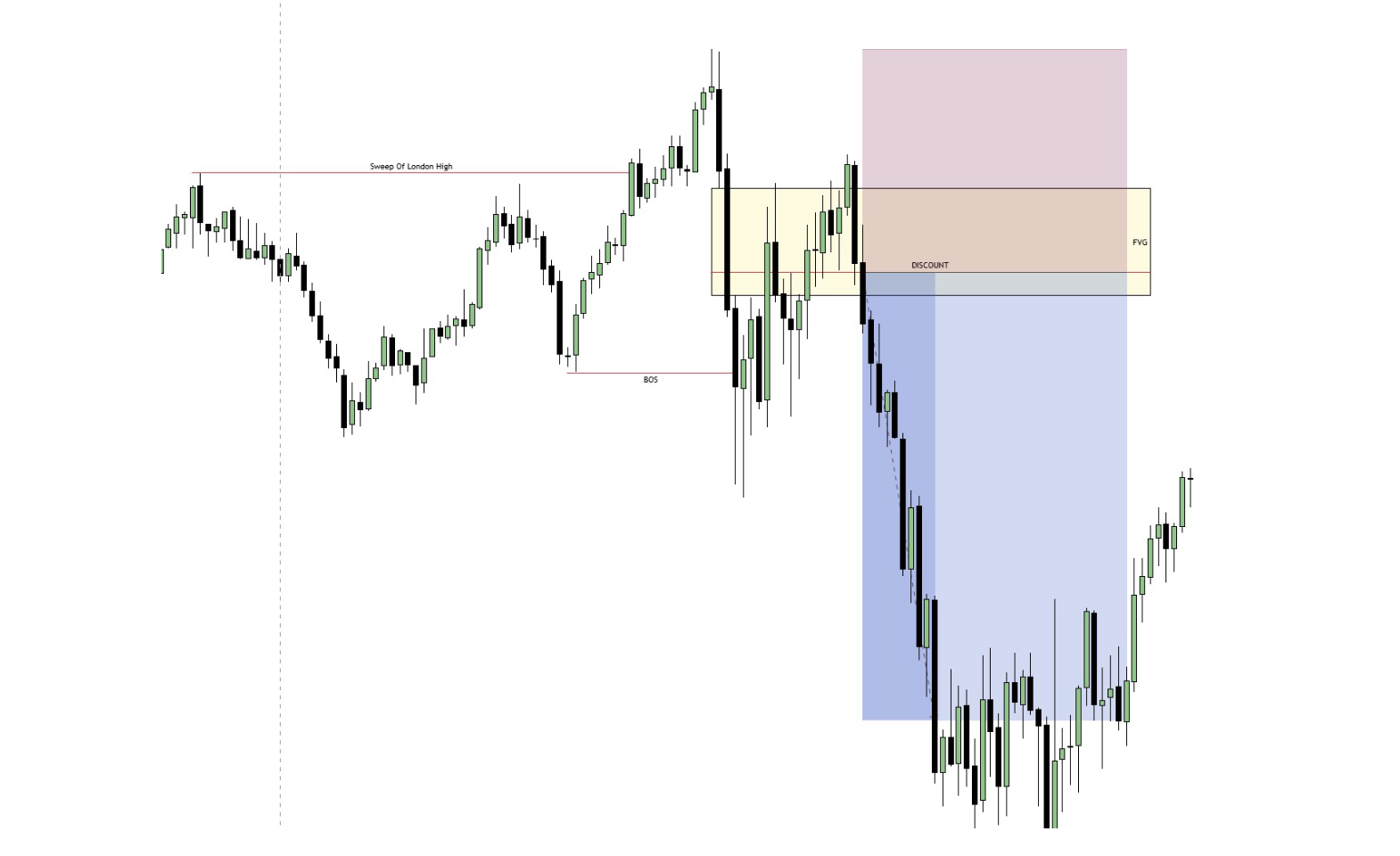 The move down creates a strong displacement and forms a Fair Value Gap (FVG). This FVG becomes our entry zone.