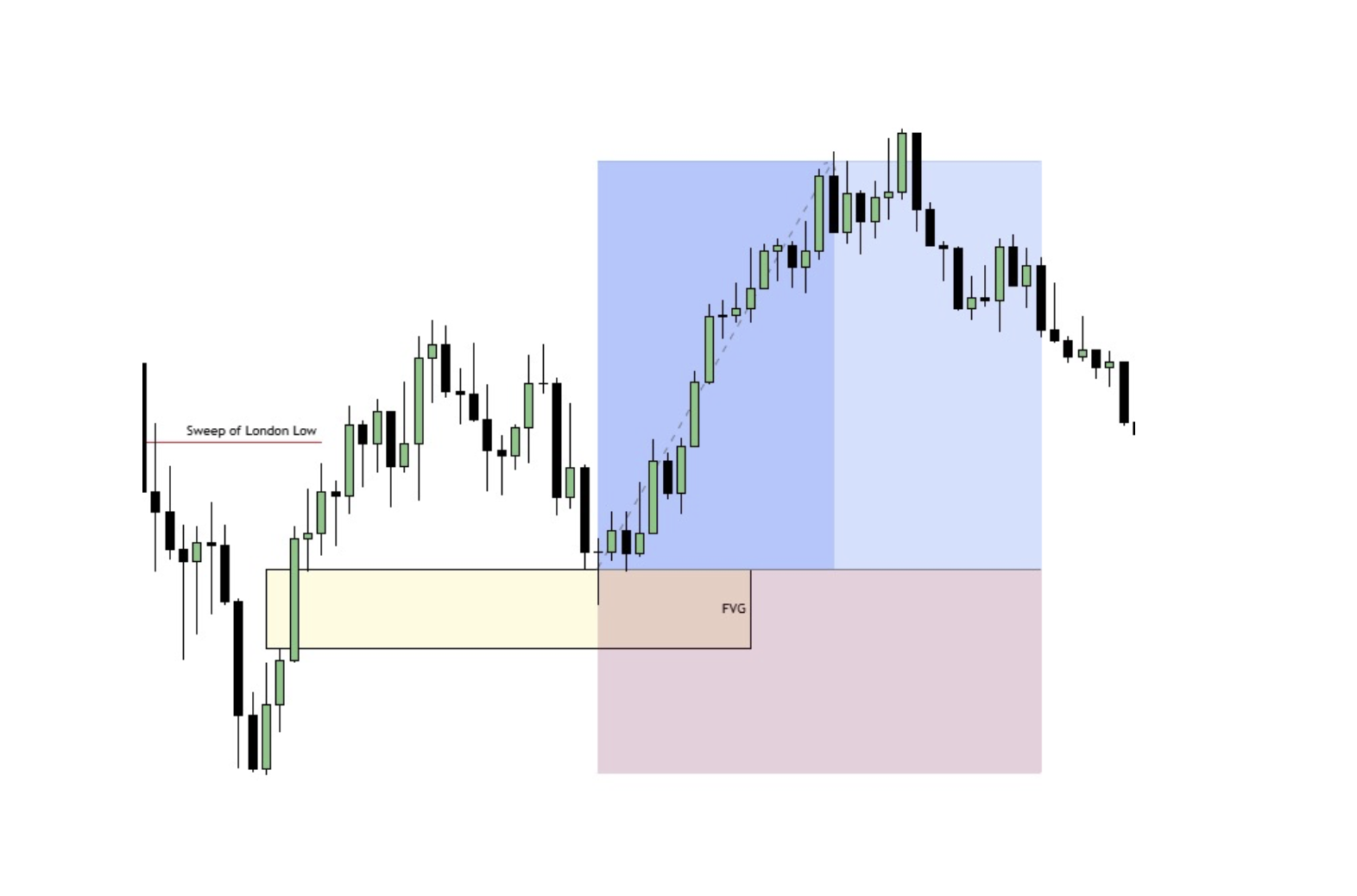 Price sweeps below the London Low. This is our liquidity grab and signals we look for a long setup.
