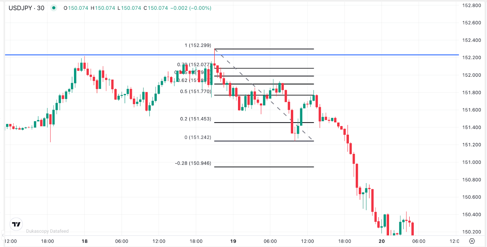 Once the price closes below the 0.20 fib level, stop loss shifts to breakeven to eliminate downside risk.