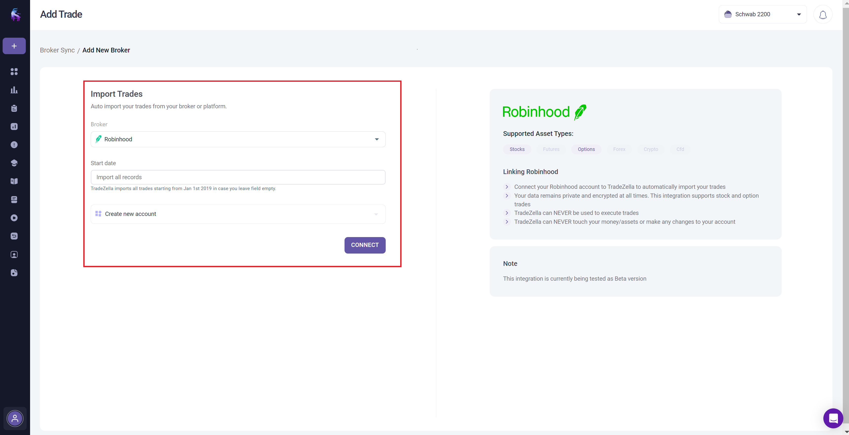 Syncing your Robinhood broker with TradeZella is a straightforward process. Follow these steps to import your trading data seamlessly: