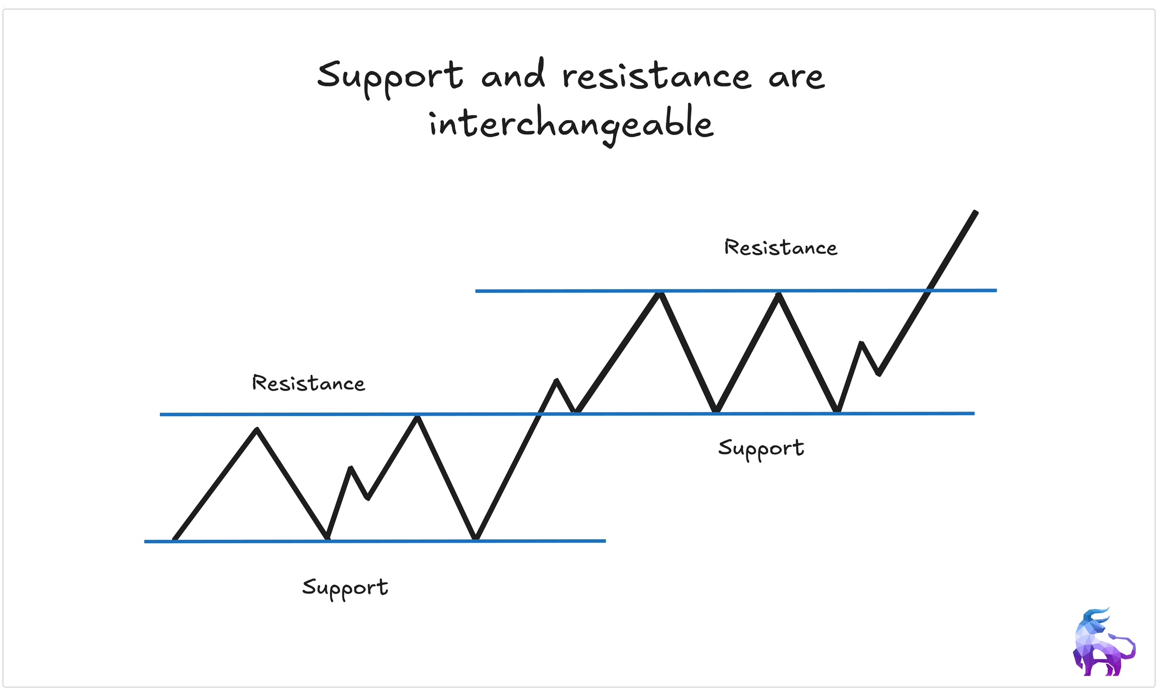 - When broken, support can become resistance and vice versa — these levels can switch roles.