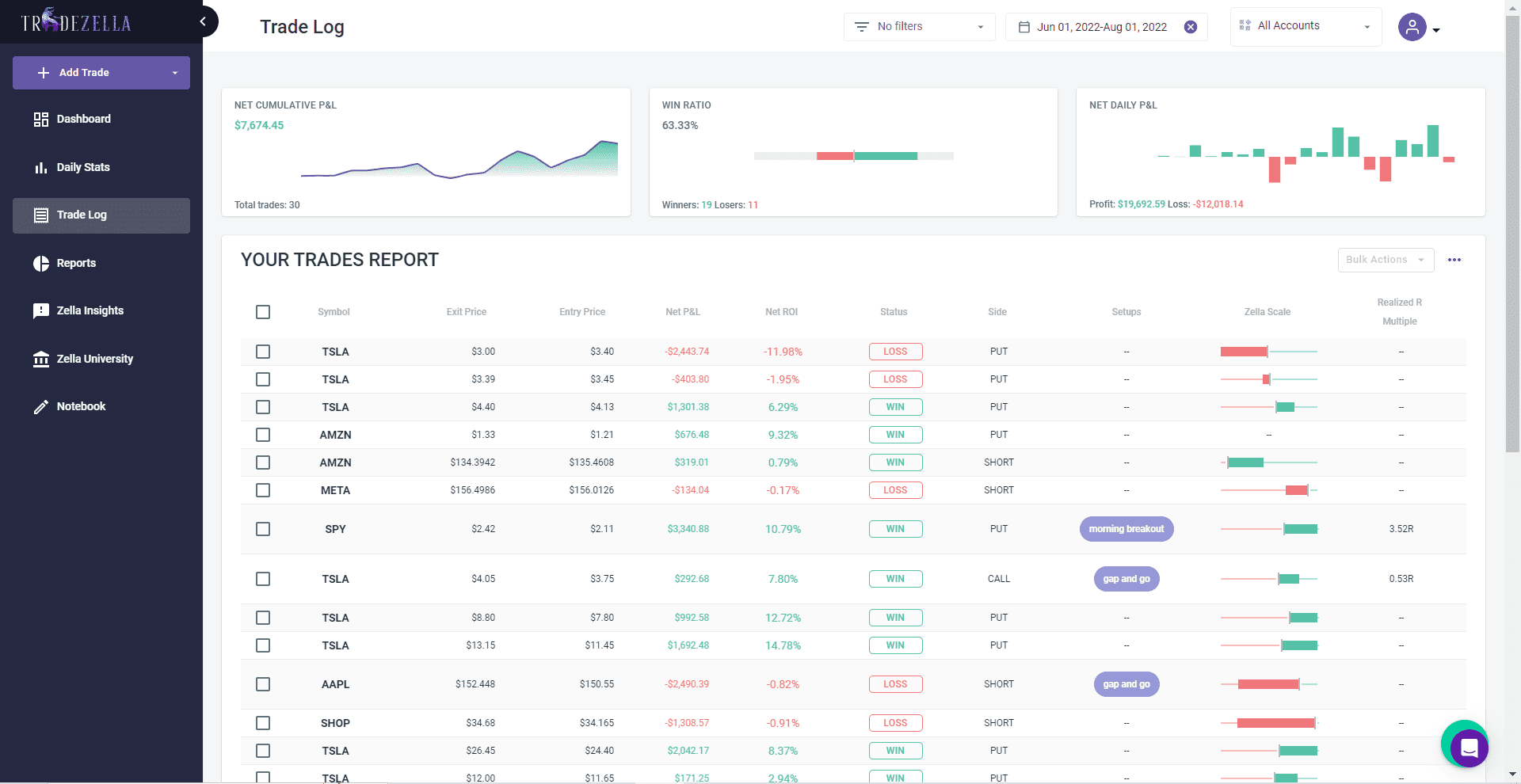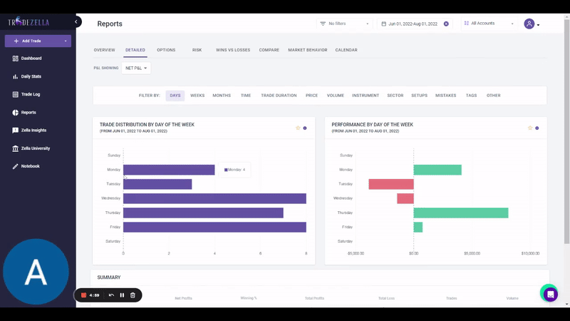 With TradeZella's reports, traders can get a better understanding of their trading activity and identify areas of their strategy that may need improvement.