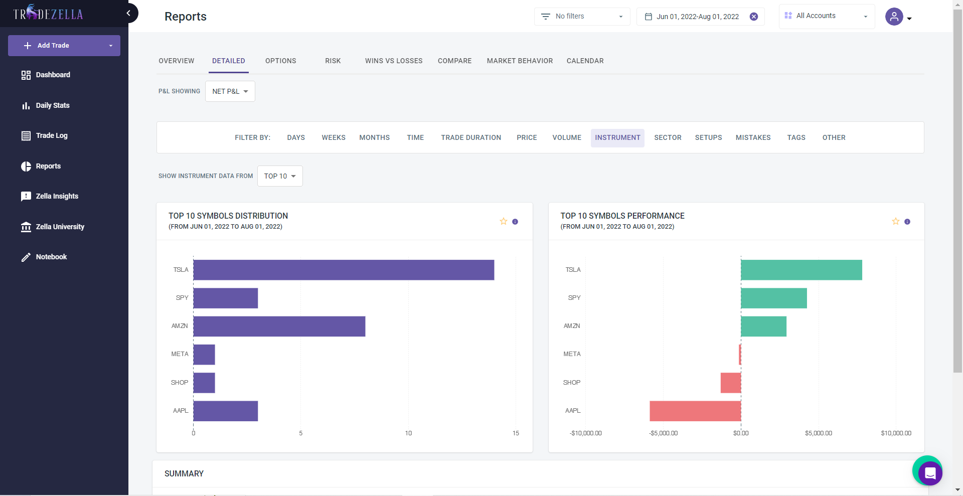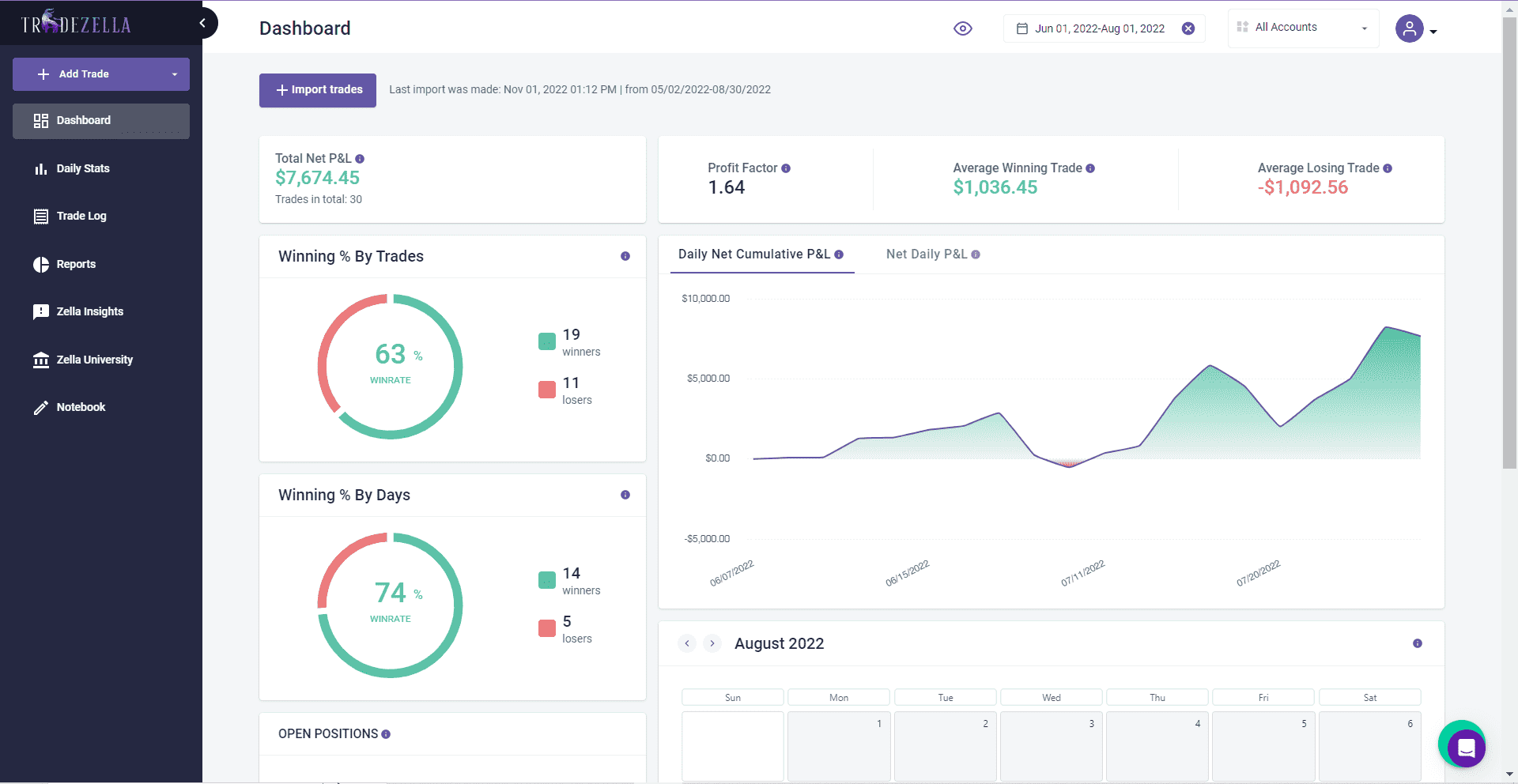 One of the key features of TradeZella is its ability to provide drilled-down reporting, which allows traders to analyze their trades in greater detail and identify patterns and trends.