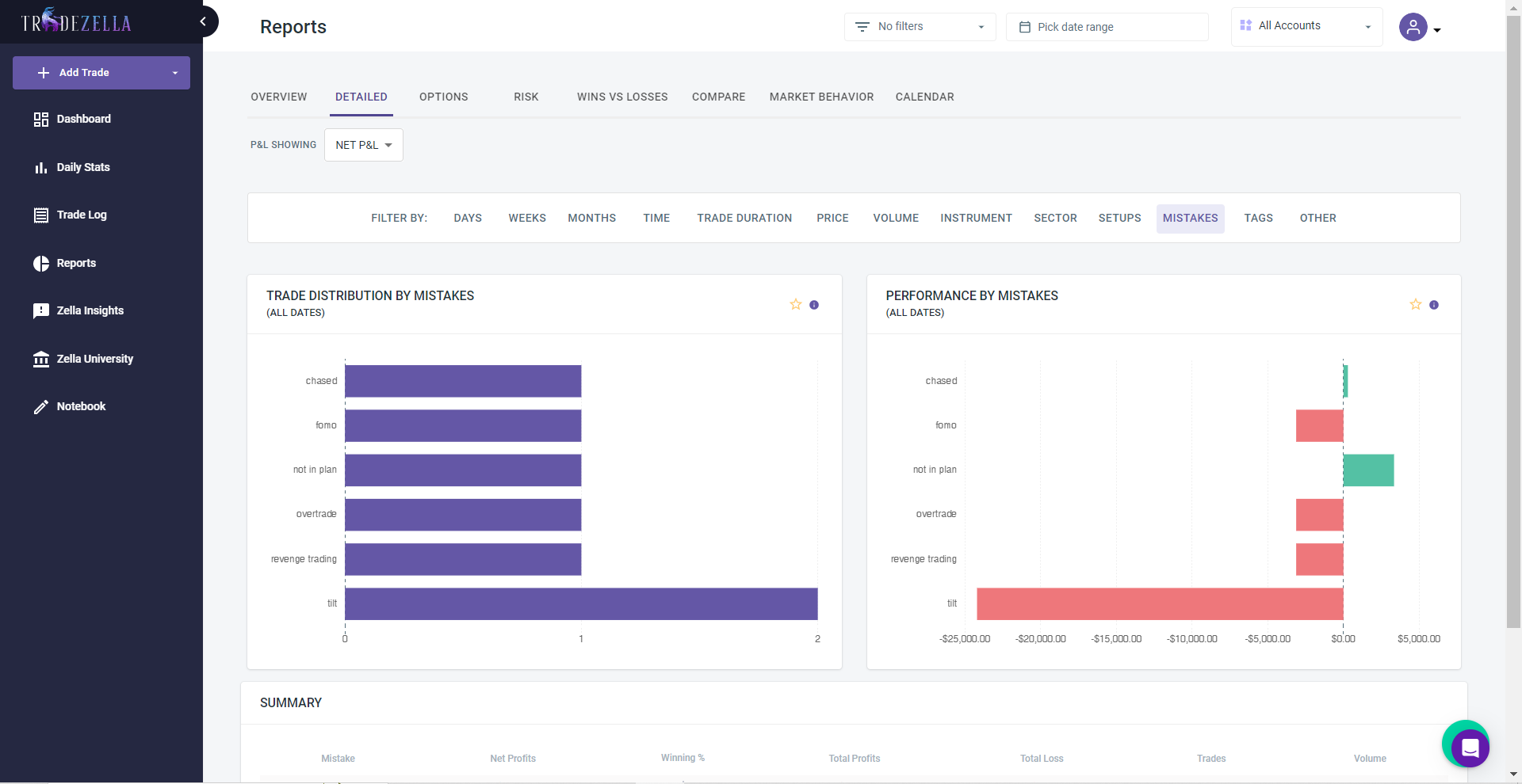 In addition to identifying the factors that contribute to their most profitable trades, traders can also use TradeZella's reports to identify common mistakes and areas for improvement.